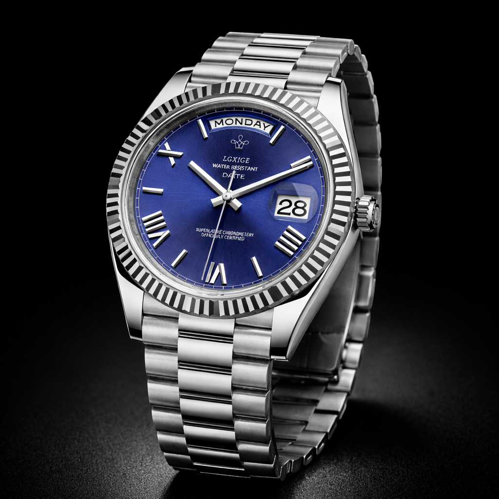 The Presidential Date in Silver is a statement of authority, refinement, and timeless elegance. Designed for men who value presence and precision, this timepiece blends classic watchmaking aesthetics with modern reliability.